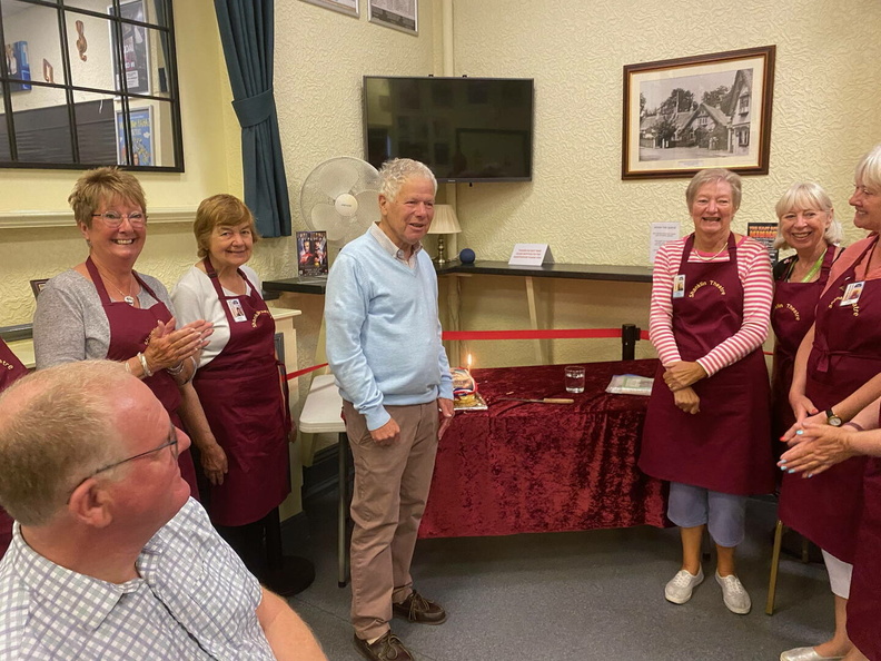 Celebrating Vic's 80th Birday with a cakemade by the Catering team
